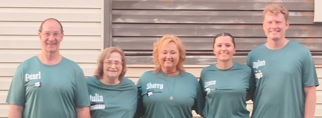 I am probably the least talented musician of our band. I have played the flute for years and I read music but I don’t play by ear. Sherry, Pearl and Julia write the notes on the music for me and I just have to learn the rhythm patterns which sometimes it takes me awhile and I get frustrated when I don’t pick it up quickly. I was inspired to write a few songs and I was excited when Sherry put music to the first one. It has been interesting to watch it change into more than just words but into an actual song. What seems to also have changed a little, at least I think it changed, is how our songs come to be the final song. Sherry will bring it into practice and she will have a melody (sometimes Kansas is the one with the melody) and then Pearl will help figure out if the timing should be 4/4 or 6/8, etc… We all start making suggestions after that and some stick and others get discarded and then we practice the song that way for awhile and down the road we tweak the songs or in some cases make drastic changes. There are also intros, leads and endings to figure out and which instrument will do what. Eventually it becomes a song. My song, now songs are not on Lift Me Up. The lyrics on Lift Me Up were written by Michael Weed. I pray that the songs bless everyone that hears them. I love the Lord and I am not always good about witnessing so my hope is that my witness comes out in our music.